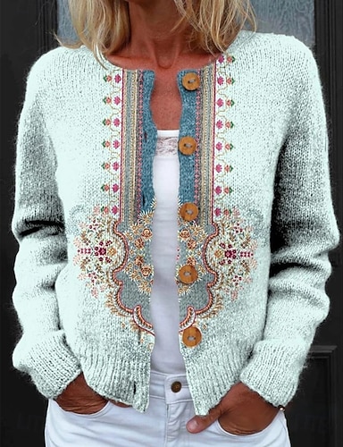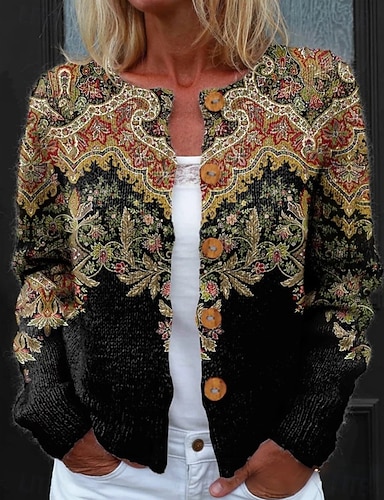 سويت شيرت كارديجان نسائي محبوك مضلع ببطانة أمامية على شكل دائري بأكمام طويلة خفيف أنيق عتيق يومي طباعة زهرة جرافيك هندسي محبوكة خارجية يومي عطلة أسود بنفسجي ربيع خريف