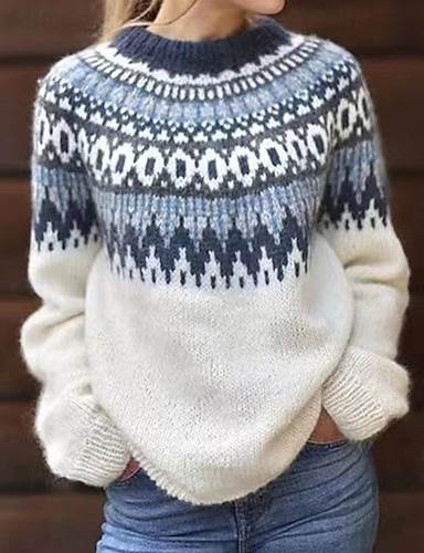 نسائي سترة كنزة صوفية كاجوال ناعم ورد الرسم مضلع رقبة عالية مدورة محبوك كم طويل قمصان عادية متماسكة الأماكن المفتوحة مناسب للبس اليومي عطلة نهاية الاسبوع أزرق رمادي غامق الخريف الشتاء