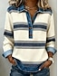 نسائي سترة عتيق يوميا رقبة عالية الأمام مفتوح سحاب محبوك كم طويل قمصان عادية متماسكة مناسب للبس اليومي أبيض أزرق البحرية الخريف الشتاء