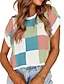 نسائي سترة جاكيت صوف أنيق موضة أناقة الشارع ألوان متناوبة رقبة عالية مدورة بقع محبوك كم قصير قمصان عادية متماسكة مناسب للبس اليومي الأماكن المفتوحة عطلة نهاية الاسبوع أسود أبيض الصيف الربيع