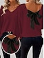 نسائي كنزة صوفية سحاب سهل كاجوال كم طويل V رقبة قمصان عادية شارع مناسب للبس اليومي أزرق أسود أبيض أحمر أخضر الخريف الشتاء
