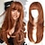باروكة شعر طويلة مموجة باللون الأحمر والبني مع غرة للنساء من ألياف صناعية مقاومة للحرارة للاستخدام اليومي في الحفلات