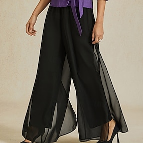نسائي بنطلونات بدلة سروال واسع السراويل الصيفية العطلة موضة كاجوال يومي مكتمل الطول خصر متوسط سهل سحاب ستايل راحة خفة الوزن ناعم مرن نسبياً ملابس الشارع مناسب للحفلات مناسب للعطلات أسود