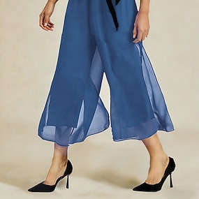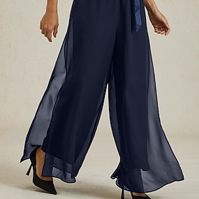 نسائي قاع الجرس سروال واسع أنيق مكتمل الطول خصر متوسط دانتيل جيب حزام مطاط مرن نسبياً مناسب للبس اليومي زفاف حفلة كوكتيل خمر الصيف الربيع الخريف عادي