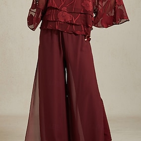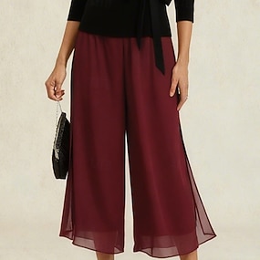 بنطلون تنسل روما بورجوندي بخصر مطاطي وواسع، مناسب للعطلات والحفلات