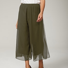 نسائي صفيق أنيق Ankle-length خصر متوسط قابل للبسط فضفاض المكتب \ الوظيفة مناسب للبس اليومي أخضر الزمرد الصيف الربيع الخريف