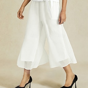 نسائي ساق عريضه مستقيم أنيق Ankle-length خصر متوسط حزام مطاط قابل للبسط فضفاض مناسب للبس اليومي زفاف أبيض الصيف الربيع الخريف