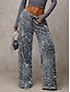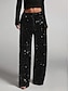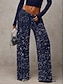 نسائي ساق عريضه سراويل سروال سباركلي أنيق موضة مضيئ مكتمل الطول خصر عالي سهل ترتر مريح مرن نسبياً نادي مناسب للحفلات شارع أزرق أرجواني داكن M بيج وردي ذهبي الصيف الربيع عادي