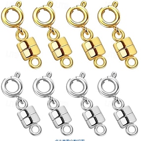 8 قطع من مشابك القلائد المغناطيسية القوية وإغلاقات المجوهرات المطلية بالذهب والفضة، محولات مشابك القلائد والأساور والسلاسل