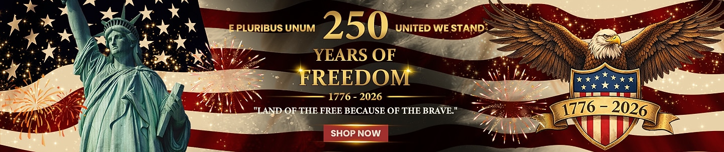 عملة تذكارية أمريكية قديمة "نثق بالله" بمناسبة مرور 250 عامًا على الحرية - إصدار محدود 1776-2026، تحمل تصميمًا يضم نسرًا وحذاءً عسكريًا وجرس الحرية والعلم الأمريكي.