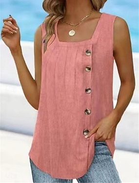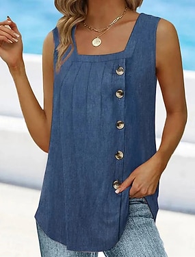 نسائي كنزة قميص بلا اكمام تي الأعلى بقع أزرار الصدر لون الصلبة موضة كلاسيكي كاجوال بدون كم U رقبة قمصان عادية مناسب للبس اليومي مناسب للخارج عطلة نهاية الاسبوع أبيض أخضر داكن رمادي الصيف الربيع