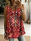 نسائي كنزة قميص داخلي بدون أكمام طباعة ورد بوهيميا عرقي بدون كم V رقبة قمصان عادية مناسب للبس اليومي مناسب للعطلات أزرق أزرق البحرية جمل فوشيا أخضر الصيف