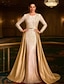 A-الخط ذيل مثل الفرشاة فساتين السهرة فستان سهرة مع تنورة خارجية الزي الرسمي أنيق التألق مضيئ كم طويل شق الصدر رسمي زفاف ساتان مع طيات تفاصيل كريستال 2025