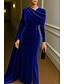 عامودي ذيل مثل الفرشاة فستان سهرة مع عباءة فساتين السهرة الزي الرسمي أنيق التألق ستايل المشاهير كم طويل رقبة عالية مدورة رسمي زفاف كريب ستريتش مع شال 2025