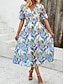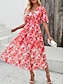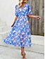 نسائي فستان ميدي لباس غير رسمي فستان من الشيفون فستان مشجر أنيق موضة الحديث الأماكن المفتوحة عطلة مناسب للخارج عادي ورد كم قصير V رقبة أزرق أحمر أخضر أحمر وردي الصيف الربيع