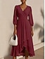 نسائي فستان ميدي فستان من الشيفون لباس غير رسمي فستان سوينج أنيق موضة الحديث الأماكن المفتوحة عطلة مناسب للخارج عادي سهل كم طويل V رقبة أزرق أسود أبيض عنابي الصيف الربيع