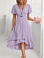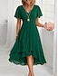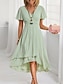 نسائي فستان طويل فستان من الشيفون لباس غير رسمي فستان سوينج أنيق موضة الحديث الأماكن المفتوحة عطلة مناسب للخارج عادي سهل كم قصير V رقبة أزرق أخضر فاتح وردي بلاشيهغ عنابي الصيف الربيع