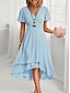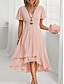 نسائي فستان ميدي لباس غير رسمي فستان من الشيفون فستان سوينج أنيق موضة الحديث الأماكن المفتوحة عطلة مناسب للخارج عادي سهل كم قصير V رقبة أزرق زهري فاتح أسود أبيض الصيف الربيع