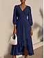 نسائي فستان ميدي فستان شيث فستان رباط أنيق حفلة ليلية ضيف حفل زفاف مكشكش مطرز عادي لون الصلبة بدون كم V رقبة أزرق البحرية