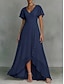 نسائي فستان طويل فستان ستان فستان الحفله فستان شكل حرف A أنيق موضة الحديث حفلة ليلية مناسبة خاصة حفلة كوكتيل عادي سهل بدون كم V رقبة أسود أبيض نبيذ أزرق البحرية الربيع الخريف