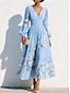نسائي فستان ميدي فستان شكل حرف A أنيق أكمام واسعة مناسب للبس اليومي عطلة ضيف حفل زفاف محاك بربطات كشكش عادي ورد كم قصير V رقبة السماء الرمادية