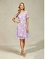 نسائي فستان قصير فستان شيفت أنيق لون الصلبة كم قصير رقبة عالية مدورة ليلاك