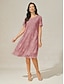 نسائي فستان ميدي فستان الكشكشة أنيق مناسب للبس اليومي عطلة ضيف حفل زفاف دانتيل متعدد الطبقات عادي ورد بدون كم كم قصير U رقبة خوخ
