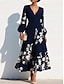 نسائي فستان طويل ماكسي لباس غير رسمي فستان كوكتيل فستان زفاف ضيف فستان من الشيفون أنيق كاجوال مناسب للبس اليومي عطلة مواعدة عادي منقط 3/4 الكم V رقبة أزرق داكن الخريف