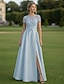 A-الخط طول الأرض فساتين السهرة الزي الرسمي أنيق ألوان الباستيل كم قصير رقبة عالية مدورة زفاف رسمي ساتان مع زهرة مطرزة شريطة ترتر
