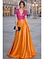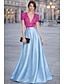A-الخط طول الأرض فساتين السهرة منفوش الزي الرسمي أنيق حريري كم طويل V رقبة حفلة تخرج / حفلة موسيقية / حفلة رقص رسمي ساتان مع روش