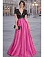 A-الخط طول الأرض فساتين السهرة أنيق مكعبات الألوان كم قصير V رقبة زفاف رسمي جيبة ساتان مترتر مع طيات ترتر