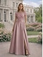 A-الخط طول الأرض فساتين متنوعه فساتين السهرة منفوش الزي الرسمي أنيق مرتفع منخفض بدون كم رقبة باتو رسمي ضيف حفل زفاف فستان وردي ساتان مع جيبة