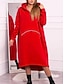 فستان هودي نسائي بفعل القطن - فستان ميني - فستان شيفت - فستان عطلة غير رسمي - مدرسة - في الهواء الطلق - عطلة - مقاس مناسب - تصميم هندسي - تصميم مقلم - لون كتلة - أكمام طويلة - ياقة مستديرة - أحمر -