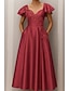 A-الخط ذيل مثل الفرشاة فساتين السهرة منفوش الزي الرسمي أنيق التألق ستايل المشاهير 3/4 الكم V رقبة حفلة في الحديقة زفاف ستان مطاطي مع شريطة