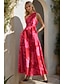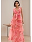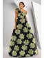 فستان سهرة بطول أرضي على شكل حرف A فستان كؤوس رسمي بأسلوب المشاهير بأكمام طويلة V عنق حفل حديقة رسمي حزام شريط مع طباعة زهور