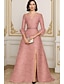 A-الخط طول الأرض فستان ديربي فساتين السهرة منفوش الزي الرسمي أنيق سبليت عالية 3/4 الكم قبعة القميص زفاف رسمي حزام / وشاح ساتان مع شريطة انقسام