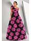 A-الخط طول الأرض فساتين السهرة أنيق زهري بدون كم كتف واحد حفلة في الحديقة زفاف ساتان مع طباعة الأزهار شريطة
