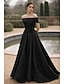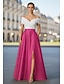 A-الخط طول الأرض فساتين السهرة منفوش الزي الرسمي أنيق حريري كم طويل دون الكتف زفاف رسمي جيبة ساتان مع جيبة