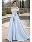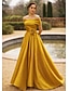 A-الخط طول الأرض فستان رسمي فستان سهرة فساتين السهرة منفوش الزي الرسمي أنيق بدون كم دون الكتف زفاف رسمي ساتان مع شريطة