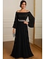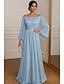 A-الخط طول الأرض فساتين السهرة أنيق التألق مضيئ 3/4 الكم رقبة باتو حفلة في الحديقة زفاف ساتان مترتر مع طيات