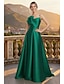 A-الخط طول الأرض فساتين السهرة منفوش الزي الرسمي أنيق ستايل المشاهير بدون كم كتف واحد حفلة في الحديقة زفاف ساتان عارية الظهر مع شريطة طيات