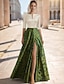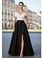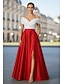 A-الخط طول الأرض فساتين السهرة الزي الرسمي أنيق سبليت عالية 3/4 الكم دون الكتف زفاف رسمي ساتان مع شريطة