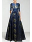 منفوش A-الخط طول الأرض فساتين السهرة منفوش الزي الرسمي أنيق التألق ستايل المشاهير 3/4 الكم رقبة باتو حفلة في الحديقة زفاف ساتان كريب ستريتش مع طباعة الأزهار