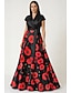 A-الخط طول الأرض فساتين السهرة منفوش الزي الرسمي أنيق عتيق مكعبات الألوان كم قصير قبعة القميص زفاف رسمي جيبة ساتان مع طباعة الأزهار جيبة