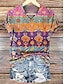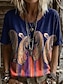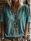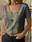 نسائي تي شيرت طباعة الرسم الهندسة عتيق أنيق كلاسيكي كم قصير V رقبة قمصان عادية فضفاض مناسب للبس اليومي مناسب للخارج أزرق أرجواني أخضر الصيف الربيع