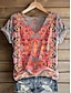 نسائي تي شيرت طباعة ورد الرسم هندسي عتيق أنيق كلاسيكي كم قصير V رقبة قمصان عادية مناسب للبس اليومي عطلة نهاية الاسبوع رماد أرجواني برتقالي الصيف الربيع