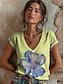 نسائي تي شيرت طباعة ورد الرسم النباتات عتيق أنيق كاجوال كم قصير V رقبة قمصان عادية مناسب للبس اليومي عطلة نهاية الاسبوع أزرق أصفر نبيذ أرجواني برتقالي الصيف الربيع