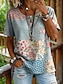 نسائي تي شيرت طباعة ورد الرسم النباتات عتيق أنيق كلاسيكي كم قصير V رقبة قمصان طويلة فضفاض مناسب للبس اليومي عطلة نهاية الاسبوع أزرق أصفر الصيف الربيع
