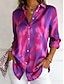 قميص نسائي بأكمام طويلة بأزرار تصميم جرافيكي تدرج لون بايزيلي يومي عادي قميص بياقة بلوزات عادية مناسبة للعيد مطبوعة بالألوان الأحمر والأزرق والفوشيا لصيف وربيع