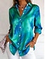 نسائي قميص قميص الوافل زر قميص أسفل Buttons الرسم طباعة الرخام عتيق أنيق كم طويل قمصان طويلة مناسب للبس اليومي الأماكن المفتوحة ملابس الشارع الأخضر والأزرق برتقالي كاكي الصيف الربيع الخريف الشتاء